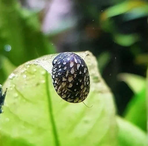 Поедает налет водоросли активно очищая аквариум, очень полезная улитка и красивая.